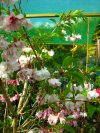 pendulous white flowers in hanging clusters. Beautiful autumn foliage